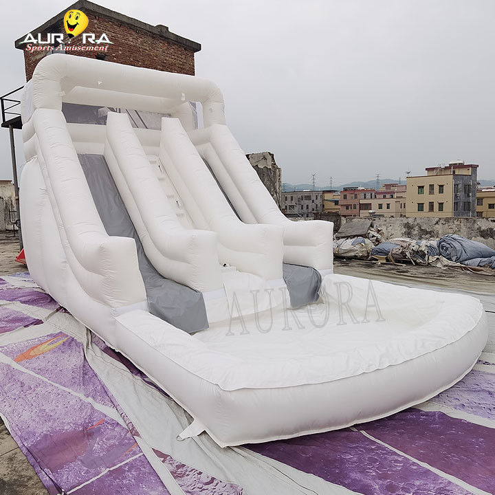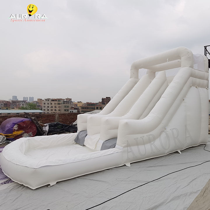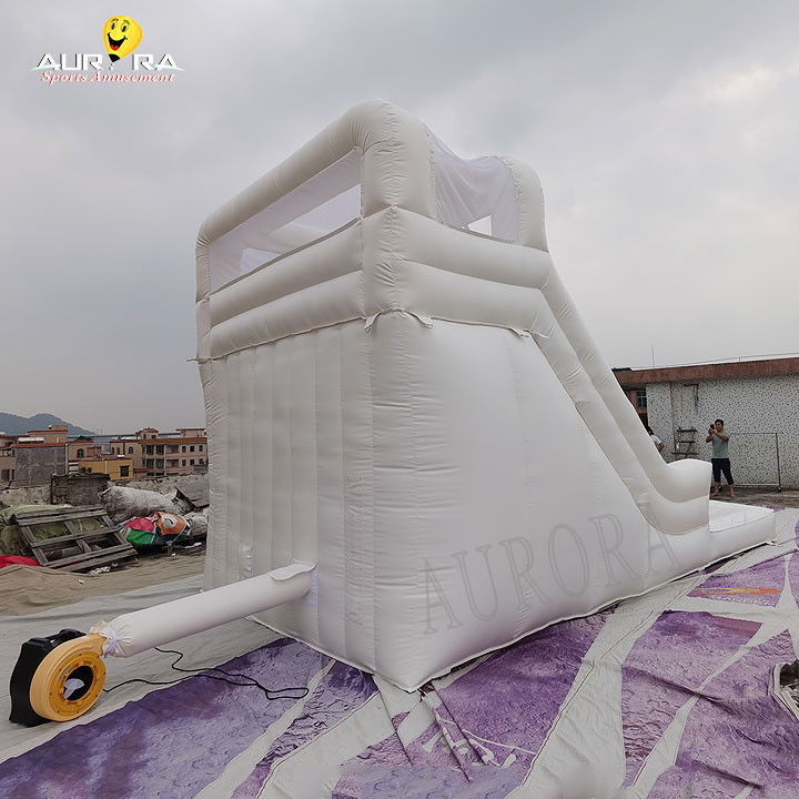 Die Farbe dieser aufblasbaren Rutsche ist weiß, was sehr sauber, erfrischend und elegant aussieht.